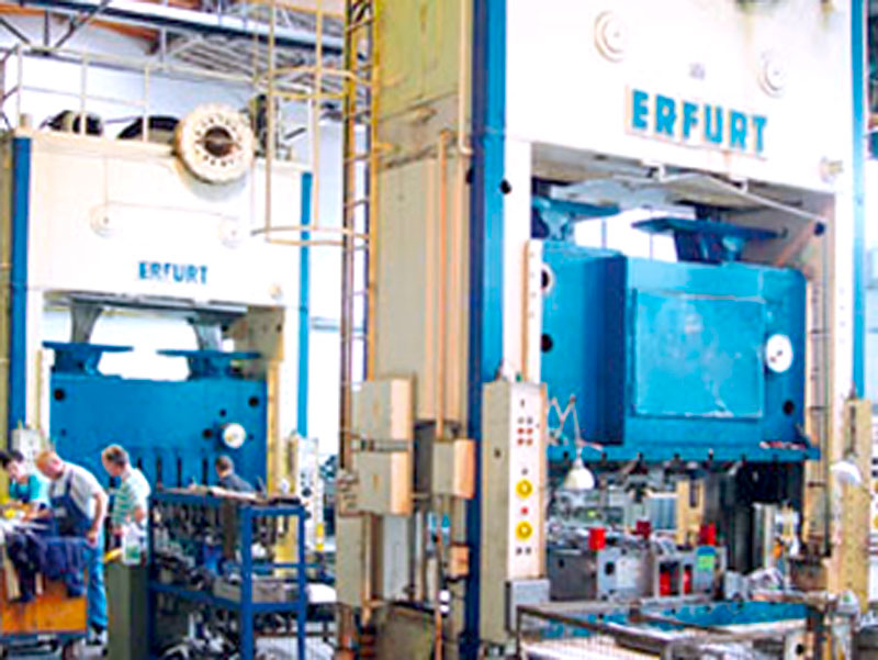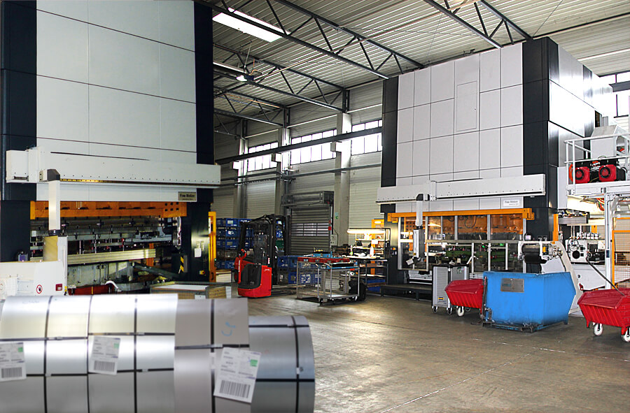 Auf diesen Maschinen werden vorwiegend kleinere Losgrößen im Handtransfer über verschiedene Arbeitsstufen hergestellt, teilweise mit nachgelagerten Arbeitsgängen, wie Beschneiden auf der OMERA-Beschneidemaschine oder Widerstandsschweißen auf unseren Punkt- und Buckelschweißautomaten.